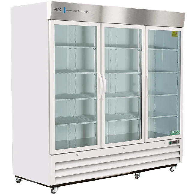 The standard series glass laboratory refrigerators are purpose built for scientific and medical applications. Standard series glass door laboratory refrigerators feature a digital microprocessor temperature controller allowing for the precise temperature management necessary for critical samples and supplies. A forced air directional refrigeration system provides superior temperature uniformity and recovery after door openings. The temperature display and alarm module offers product security with a monitoring and alarm system. Real-time sample simulated temperatures are constantly displayed and supported by audible/visual high and low temperature alarms.