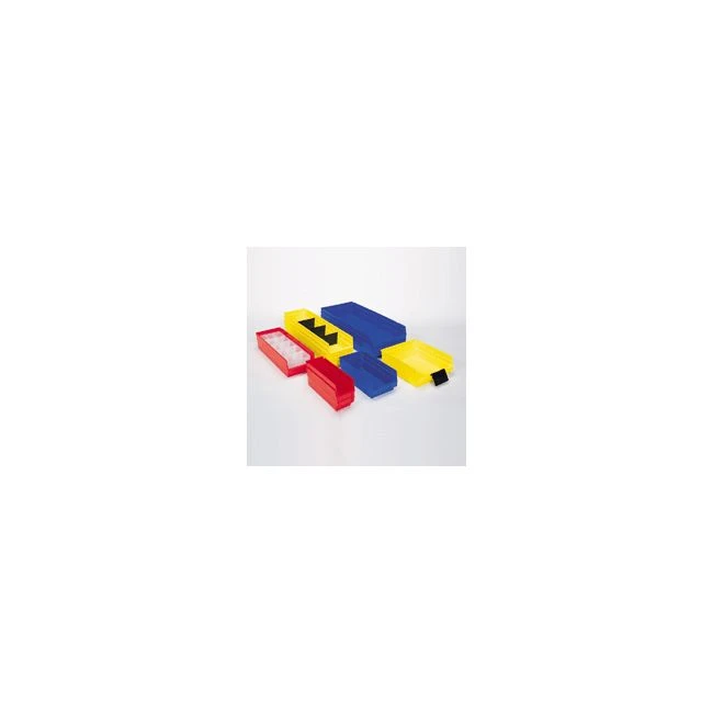Akro-Mills Shelf Bins Stop replacing worn out, flimsy corrugated bins. Shelf Bins outlast corrugated bins - paying for themselves in reduced replacement costs. Fit standard 12,18, and 24" shelving. Shelf Bins outlast corrugated bins - paying for themselves in reduced replacement costs. The superior construction of Shelf Bins allows them to be fully loaded without bulging or cracking. Durable polypropylene bins also provide an attractive, neat appearance. Works with 12", 18" and 24" deep shelving, or vertical storage and retrieval units. One-piece construction is waterproof and unaffected by grease or oil. Available in Blue, Yellow or Red. Please specify color in comments during the check out process. CESS # Model No. O.D. L"xW"xH" O.D. Millimeters LxWxH I.D. Length In. I.D. Width In. I.D. Height In.