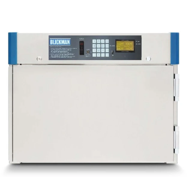 This Blickman 7925TS warming cabinets are 24.50" high and primarily used for warming solutions. Quality and control features are the same as those on the larger models. An adjustable shelf comes standard. It is suggested that these units sit on an existing cabinet, or on a Blickman transport dolly or mobile stand. Easy-to-use keypad with controls for setting internal temperature is conveniently located above the door.
