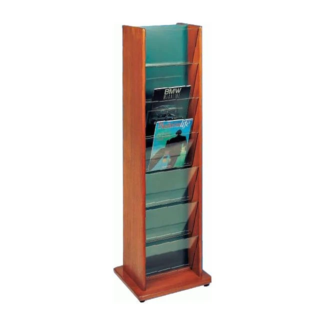 Peter Pepper 480 series magazine rack, Freestanding Stationary (does not swivel) Features Seven pocket: Size: 14”w x 53”h x 8”d Nominal Pocket ID: -->12-1/4"w x 13"h x 1-1/4"d Fourteen pockets total Freestanding double-sided