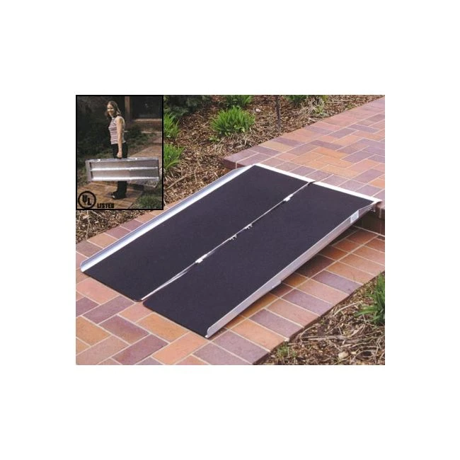 PVI Singlefold Ramp • Listed by Underwriters Laboratories Inc. • Easy to handle and set up • Convenient carrying handle, carries like a suitcase (handle not on 2’ model) • All aluminum construction, light weight and durable • Surfaced with anti-slip, high traction safety tape • Platform design ideal for wheelchairs or scooters with three or four wheels