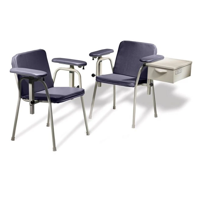 The Midmark Ritter 281 Blood Drawing Chair features an angled back and adjustable chair arms to offer patients comfort and security. Arms are equipped with quick release mechanisms for simple and efficient positioning of their height and inward/outward angle. The 281 is available with a drawer, ideal for storing supplies and providing additional work surface area.