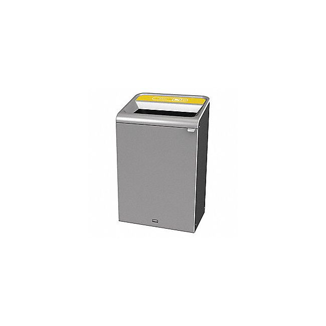 • Heavy-gauge stainless steel trash can features contoured edges and magnetic connections that keep receptacles perfectly aligned to one another for a professional appearance • Rounded easy-glide feet allow the container to be moved efficiently while a color-coded label and single stream open top reliably collect up to 33 gallons of waste • An easy-access front door with handle allows for ergonomic removal of trash from the garbage can while an internal door hinge prevents wall damage • Ships fully assembled