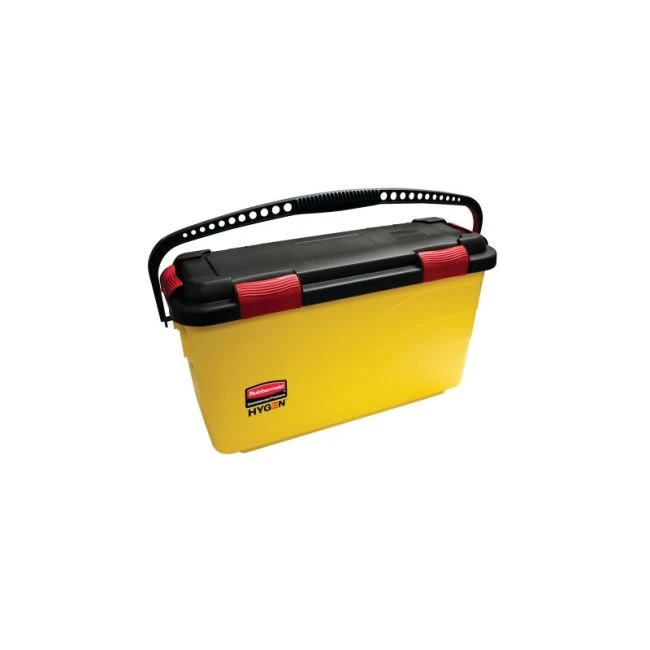The Rubbermaid Hygen Microfiber Charging Bucket, Yellow, FGQ95088YEL is ideal for healthcare facilities. The bucket is designed with a molded-in measuring guide to aid in filling with cleaning solution and grates to prevent oversaturation of microfiber wet pads. For use with single-sided Rubbermaid HYGEN microfiber mop up to 18".