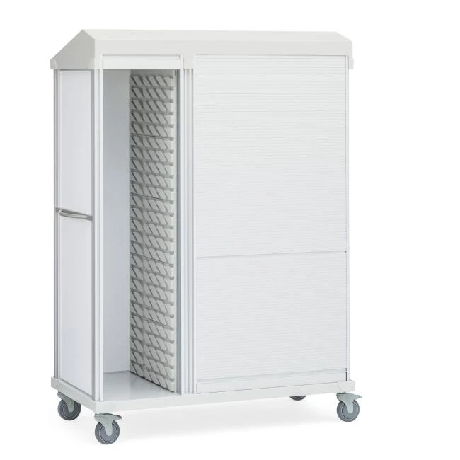 The Innerspace SR3RLD Roam 3 Supply Cart comes with two counterbalanced roll-top doors, three interior compartments, and in a Soft White powder-coated paint finish.
