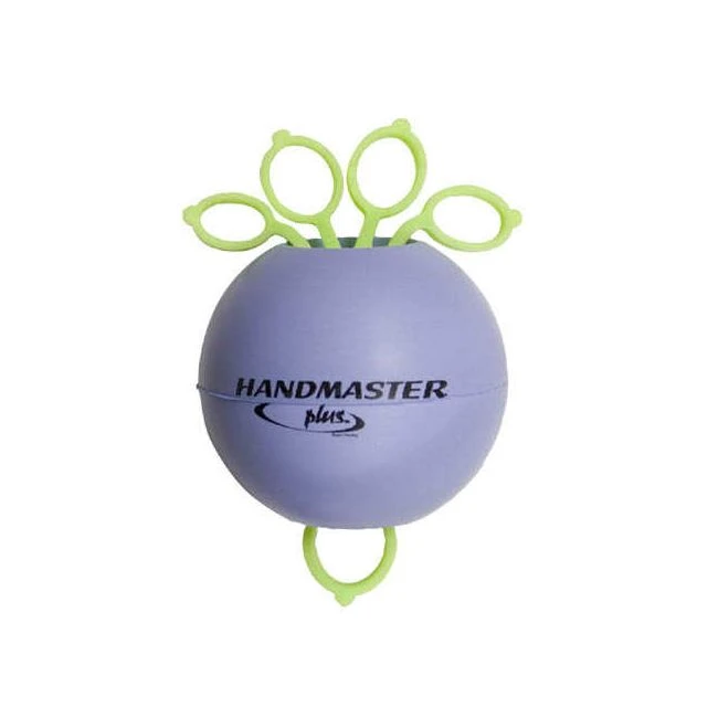 The Cando HandMaster Plus hand exerciser helps strengthen hand muscles. The HandMaster Plus can be used to treat carpal tunnel syndrome, tennis elbow, golfer's elbow, RSI's (repetitive stress injuries), tendonitis, DeQuervains' syndrome, Dupuytren's contracture, osteoarthritis, osteoporosis, stroke, neuropathy, post-surgical rehabilitation, sprain/dislocation/fracture rehabilitation, subluxation and adhesion, and circulatory concerns. This exerciser combines flexion and extension. Instructions included. There are 3 levels of firmness available: soft (purple ball, yellow cord), medium (red ball, black cord), firm (orange ball, gray cord).