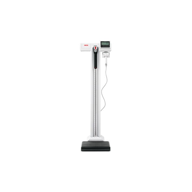 Features include: Two-Line display shows height and weight, built-in measuring rod with 10 – 230 cm measuring range, display swappable to left or right side.
