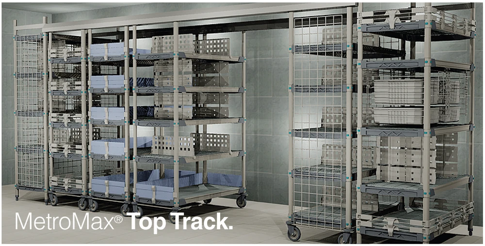 Compatible with several Metro shelving platforms—including Super Erecta®, Super Adjustable Super Erecta®, Super Erecta Pro®, and MetroMax® polymer shelving—the Top-Track System provides flexible configurations for storing medical supplies, sterile instruments, and bulk inventory.