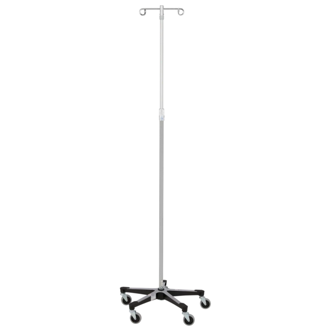 The Blickman 5 Leg Stainless Steel I.V. Stand with 2-Hooks, Twist Lock, 537792000.