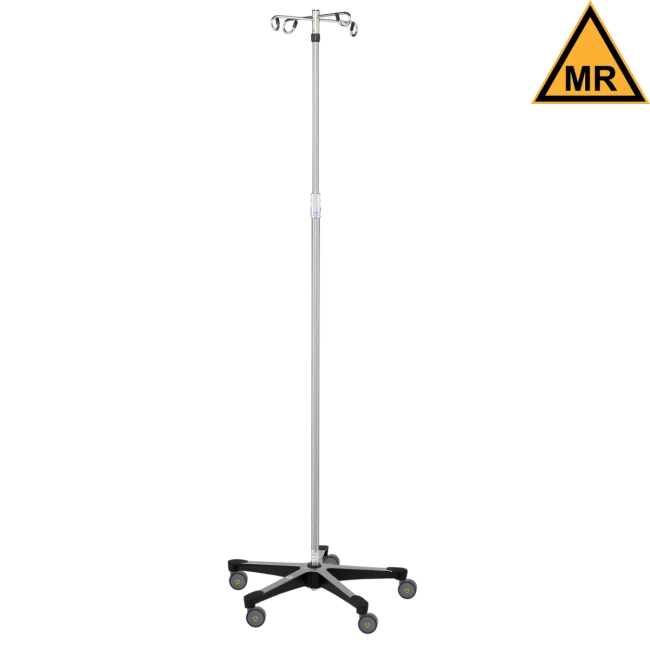 The 5-leg MR compatible IV stands come with a stainless steel pole and stand on a 24” diameter, polished diecast aluminum base with Wall Saver caps and 2” MR casters.