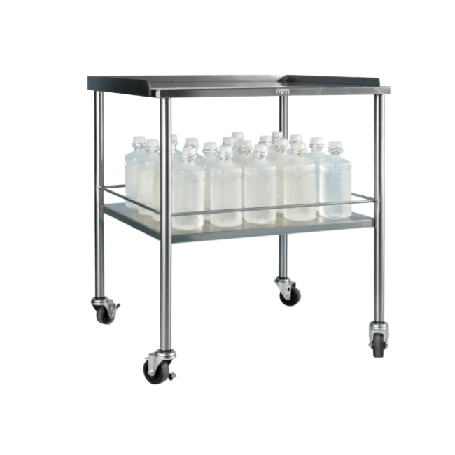 Features include: Stainless steel construction, lightweight and extremely durable, sealed reinforcing channels provide rigidity, 3" hard rubber casters.