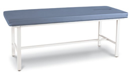 New contemporary design. High-strength steel frame and legs. Comes with holder for 21" x 3" roll paper. Standard 30" height. 2" foam provides outstanding firmness and comfort. Upholstered in heavy gauge expanded vinyl. Frame and legs are powder coated neutral gray. High impact leveling feet.